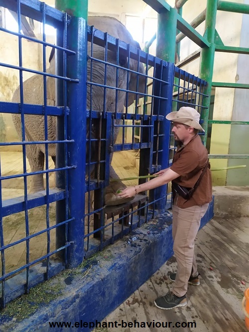 Tobias Dornbusch training the Asian elepehant female "Putri" at Tashkent Zoo, UZB.