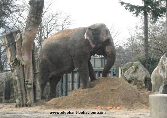 Enrichment programs for elephants, especially by foraging, have an enormous importance for the behaviour of elephant (as close to nature as possible) and the welfare of elephants in zoos.