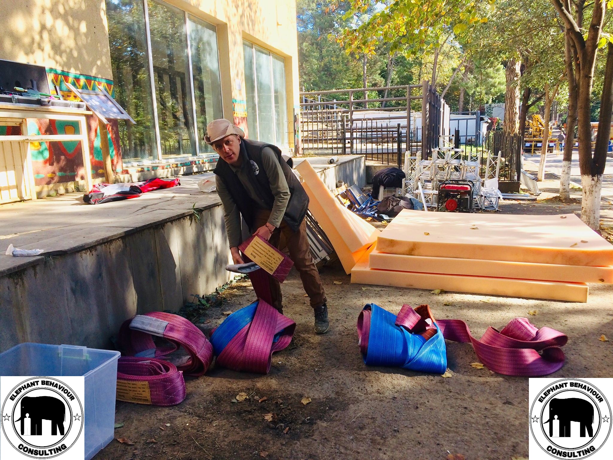 Preparing width belts, ropes and mattresses for an Elephant-Surgery.
